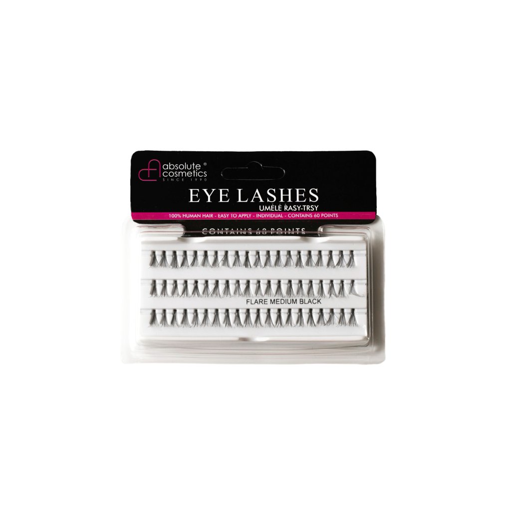 Umělé řasy 14110-MB, Absolute Cosmetics. Černé medium, 60 trsů. Umělé řasy jsou kosmetický doplněk používající se pro zvýraznění přírodních očních řas a to z důvodu zvětšení jejich tloušťky, délky a plnosti. Řasy můžete zastřihnout dle velikosti svého oka.